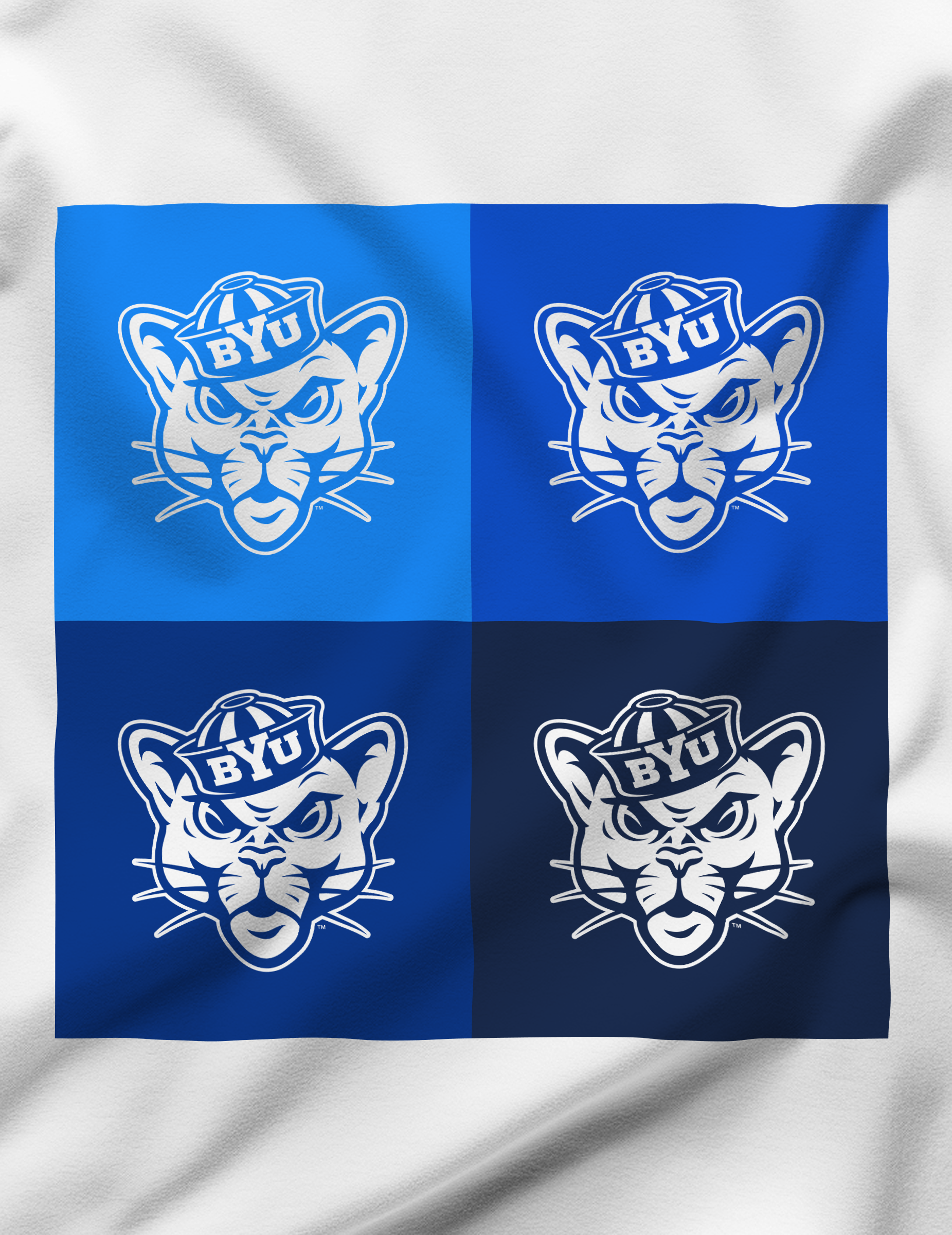 All the blues, one bold tee. Whether you're Team Royal or ride-or-die Navy, this pop art tribute to Cosmo covers every shade of BYU pride. Four iconic takes on the Cougar mascot in a striking grid, celebrating the full spectrum of Cougar fandom.